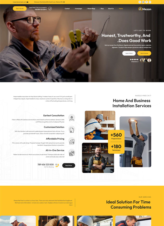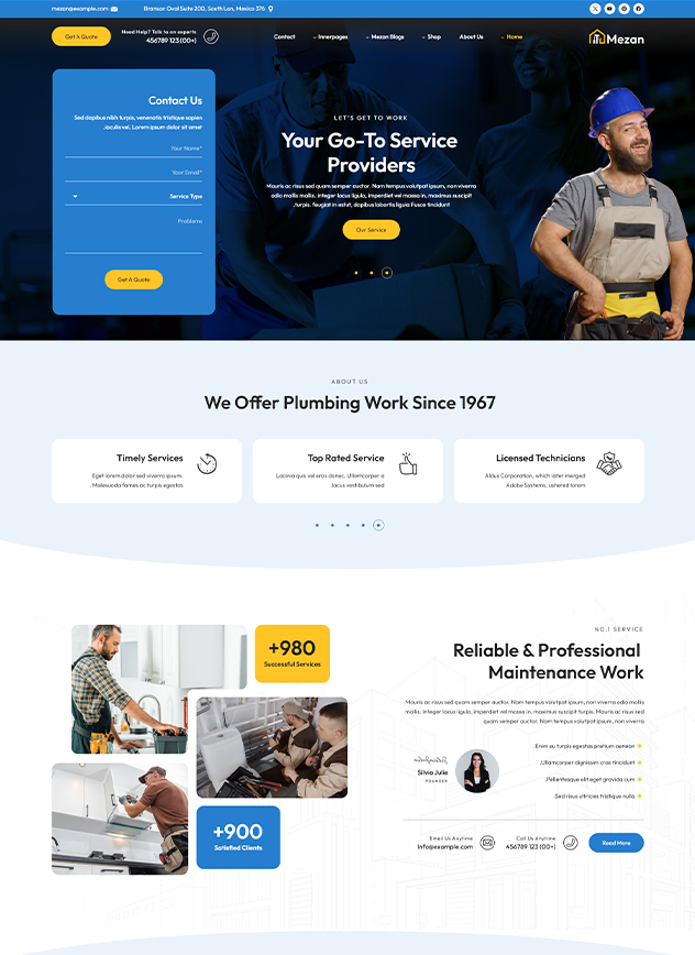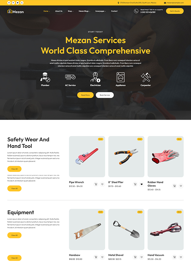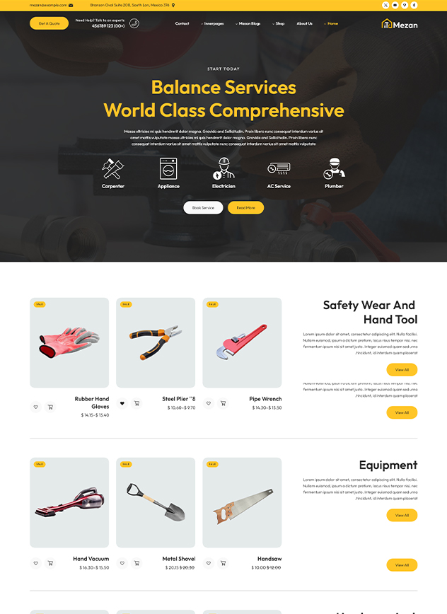 Mezan - WordPress theme is Handyman Solution for Hassle-Free Repairs and Maintenance. Mezon is a professionally crafted WordPress tailored for handyman and repair service, CCTV, Mobile Gadgets, Laptops, Plumbing, Electrical and Mechanical,